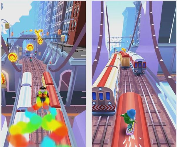 《地铁冲浪》是一款风靡全球的跑酷类手机游戏,玩家扮演街头少年在疾驰的地铁轨道上穿梭,通过滑动屏幕实现跳跃、翻滚和转向,躲避迎面而来的列车与障碍物。游戏以色彩鲜明的3D画面和动感音乐为特色,场景横跨全球多个城市如纽约、巴黎等,沿途可收集金币解锁新角色与滑板道具。随着速度不断提升,挑战性逐步升级,考验玩家的即时反应能力。其简单的操作机制与竞技排行榜设计,兼具休闲性与挑战感,自2012年上线以来长期占据跑酷游戏热门榜单。