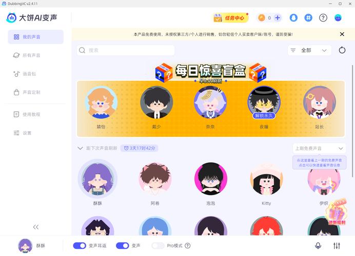“大饼AI变声器官方正版”是一款功能强大且操作便捷的智能变声软件,支持实时变声、语音录制及特效处理。其AI算法可精准模拟多种人声(如萝莉、大叔、机器人等),并适配游戏直播、语音聊天等场景。官方正版提供高清音质与低延迟体验,同时内置降噪功能,确保声音自然流畅。用户可通过简洁界面一键切换音效,自定义调节参数,满足个性化需求。软件严格保护隐私安全,无广告干扰,定期更新声库与功能,是娱乐与创作的高效工具。