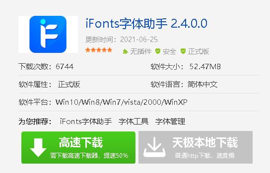"iFonts字体助手"是一款专业字体管理工具,为用户提供海量高质量字体资源与便捷的使用体验。它支持一键预览、安装/卸载字体,智能匹配设计场景,内置数千款精选中英文字体(含商用授权选项),有效解决设计、办公中的字体缺失问题。软件具备云端字体库实时更新、分类检索及收藏功能,界面简洁易用,可快速激活系统字体而无需手动安装。独有的字体特效工具能实时调整文字样式,提升创作效率,是设计师、自媒体工作者的得力助手,同时保障字体版权合规使用。