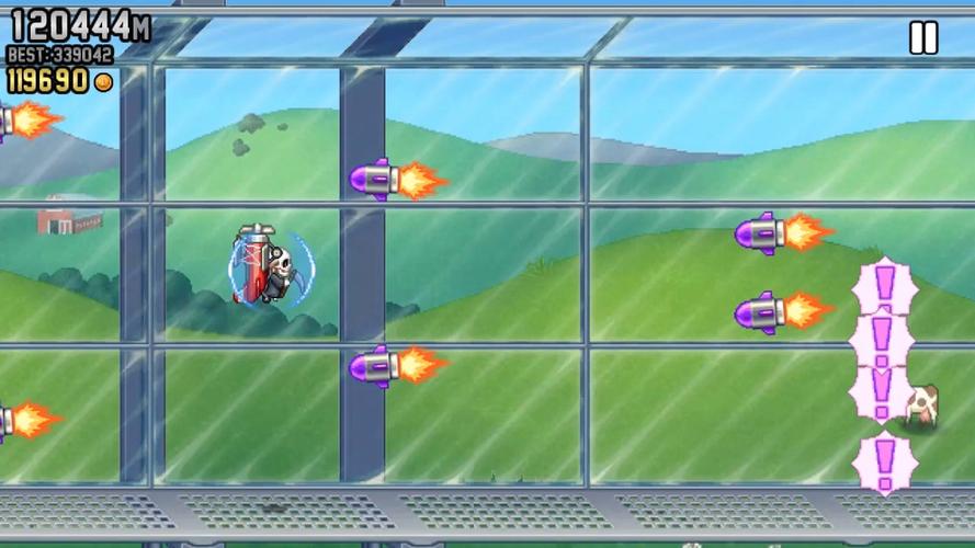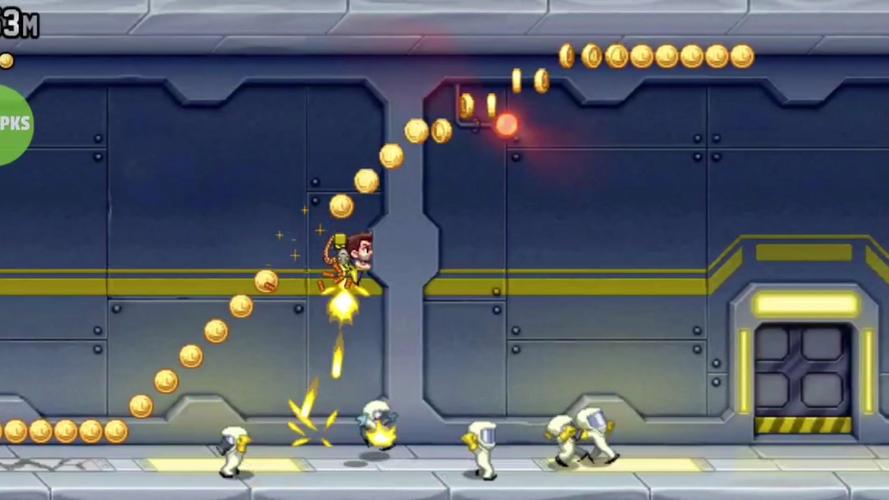 《疯狂喷气机》(Jetpack Joyride)是一款由Halfbrick Studios开发的横版跑酷手游,于2011年推出。玩家扮演主角巴里,背上实验性喷气背包,在充满障碍的实验室中高速飞行,躲避激光、导弹和电栅栏。游戏操作简单,通过点击屏幕控制升降,同时可收集金币解锁新装备和道具,如机甲、飞行器或磁铁。关卡随机生成,搭配幽默画风和动感音乐,挑战反应极限。全球下载量超亿次,被誉为跑酷游戏经典之作。