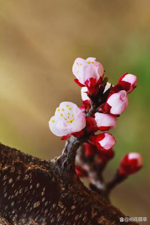杏花,蔷薇科李属落叶乔木的花朵,早春绽放,素有“报春使者”之称。其花单生或2-3朵簇生,五瓣圆形,初开时粉红渐变淡雅白色,花蕊细长金黄,与深色枝干相映成趣。花期短暂约7-10天,盛开时如云似雪,微带清香,常引发“杏花春雨”的诗意联想。原产中国,已有三千多年栽培史,兼具观赏与药用价值,果实杏仁可入药。杏花象征纯洁、娇羞与生机,在传统文化中寓意“杏林春满”,是医德与希望的代名词,亦为历代文人墨客赞咏的经典意象。